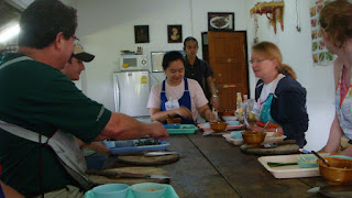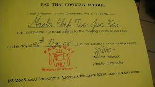 I had promised some people that i would cook a dish from each country when i get back. I really don't wished to be charged for murder because of it so i went to sign up for a cooking class!!(800B $34) at Pad thai cooking school. The teacher who is named Meow was hilarious. The dishes are simple enough to make and we get to eat it after cooking. A cookery book is provided at the end.