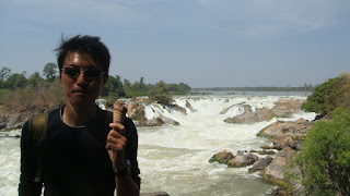 Near 4000 island is a place called Khone Phapheng Waterfall, the largest waterfall by volume in South east asia. After a long wait at the boat landing(the transport mafia will wait till there are tons of people even before getting their ass off their recliner), i arrive at the mainland and paddle my way on bicycle 10km(45mins) to it. The sun was merciless and i was the only one on the road. Needless to say, i invited many weird stares from motorist. Thankfully, i met several groups of kids on the way who were very friendly and that acted as an encouragement for me to push on in the hot sun. Sabaidee!(hello!)