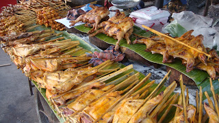 BBQ meat, a favourite of Lao people. You can find this practically EVERYWHERE in Laos