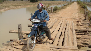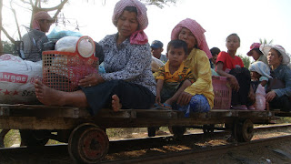 One unique feature in Battambong is the Nori, which actually is wooden planks, fitted with wheels and a motor running on the still in use rail way track. Since there is only 1 track for everybody, whenever 1 nori meets a train or another nori heading in the opposite direction, the one with a "smaller" load will have to unload and disassemble everything to allow the other to pass, then they can fix everything back together again and carry on. It is considered a sight in battambong and you can hire a private 1 hour ride for US$6-8. It is also then that i found out that i could have actually taken a nori to my next destination!! DAMM! if only i have not bought my bus ticket!!Waiting for a nori to come
