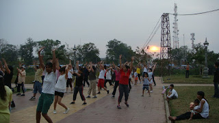 At the river was a big group of ladies of all ages doing aerobic with a local hunk leading them along with local music. It is pretty funny watching them dancing to the beats. As i sat down on the grass patch to observe the people, i was motioned over by a group of people.