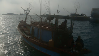 It started off like this, i wanted to do some water activities in Phu Quoc and snorkling was my intended activity. After chatting with the guys at the dive shop, they actually persuaded me to do diving instead by giving me a big discount and throwing in the snorkling gears as well. So instead of US$20 for snorkling, i paid a discounted US$40 for 1 dive with a dive master and snorkling for the 2nd stop. Included is transportation, boat, lunch, fruits and coffee on board.The only picture i took of the passing boat. Was too sick to take more